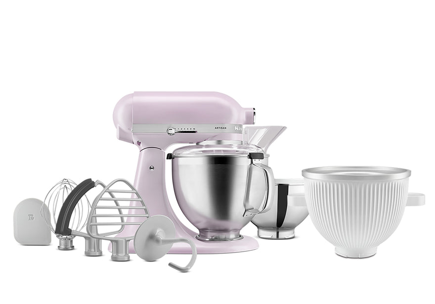 This bundle includes the iconic KSM195 Stand Mixer plus our Ice Cream Bowl Attachment and a premium accessories pack.