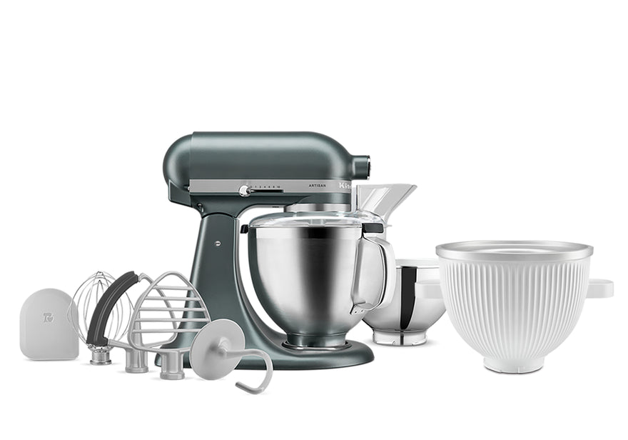 This bundle includes the iconic KSM195 Stand Mixer plus our Ice Cream Bowl Attachment and a premium accessories pack.