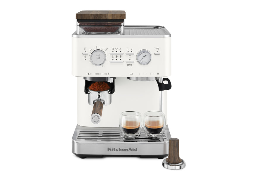 Invite nature indoors with this beautiful Walnut Wood Accessory Kit and Semi Automatic Espresso Machine Bundle. Crafted to elevate your daily ritual, this premium bundle is beautifully accented with the warmth and natural texture of true walnut wood.